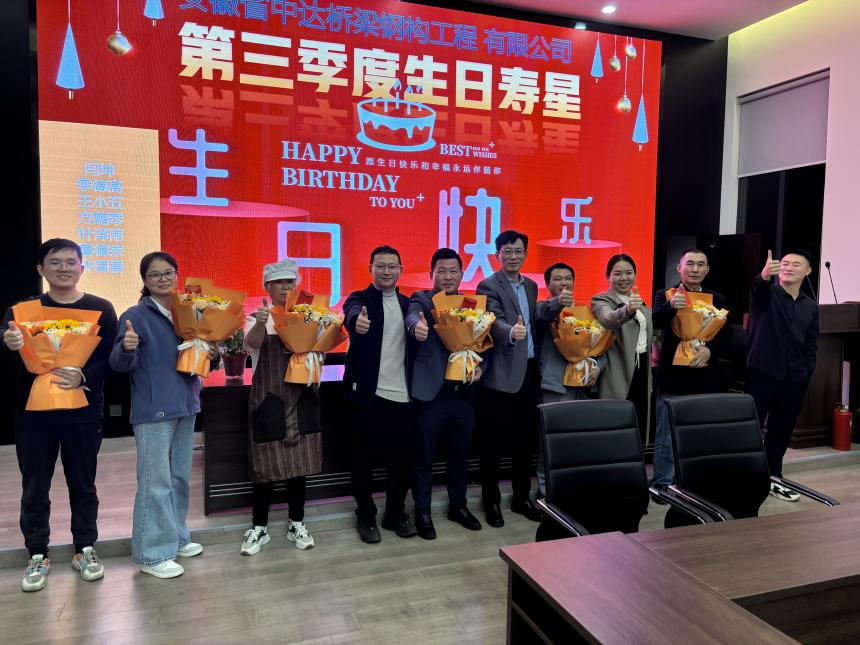 在這個秋高氣爽、豐收在望的季節,中達橋梁公司迎來了2024年第三季度的溫馨時刻——員工集體生日慶典。近日,在公司周密的策劃與...